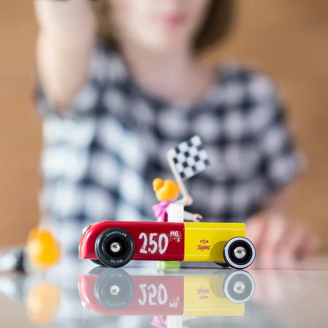 Alle Candylab auto's worden ontworpen in Brooklyn, New York, met een flinke dosis liefde voor de autogeschiedenis uit de jaren '50 en '60. Het resultaat? Een toffe mix van vintage art deco looks en modern design. Perfect voor kleine snelheidsduivels én verzamelaars die van iets unieks houden. Gemaakt van stevig beukenhout en afgewerkt met oog voor detail, zijn deze auto's gemaakt om lang mee te spelen of naar te kijken. En voorzien van een stevige en mooie verpakking!